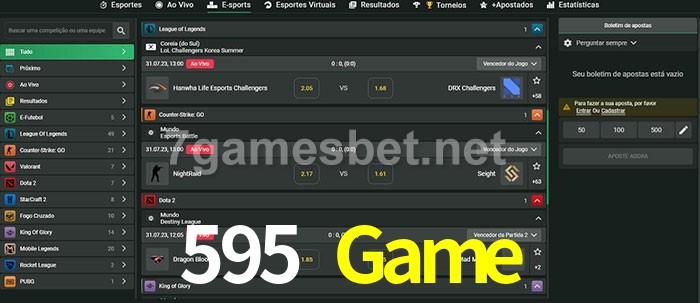 O 595 Game oferece uma grande seleção de opções de apostas em e-sports com probabilidades competitivas